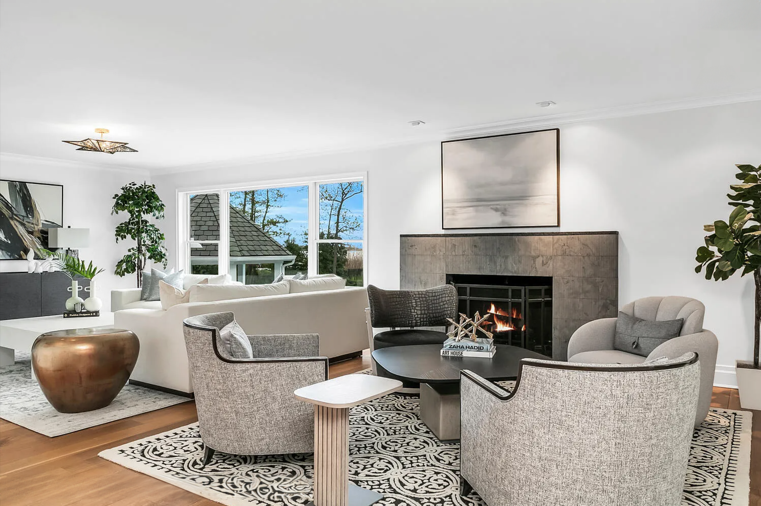 Speakeasy Elberon Estate Marlboro Rumson Princeton Designer Showcase Oakhurst Estate Rumson By The Sea His & Hers "Palm Beach" Bathroom Living Room Luxury The Art of the Accessory White On White Newlywed Bliss